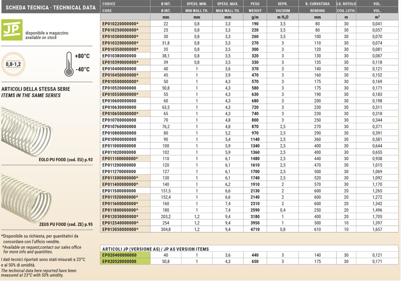 light suction of food flours, powders, sugar and granules with a limited abrasion power. Suitable for fatty food.