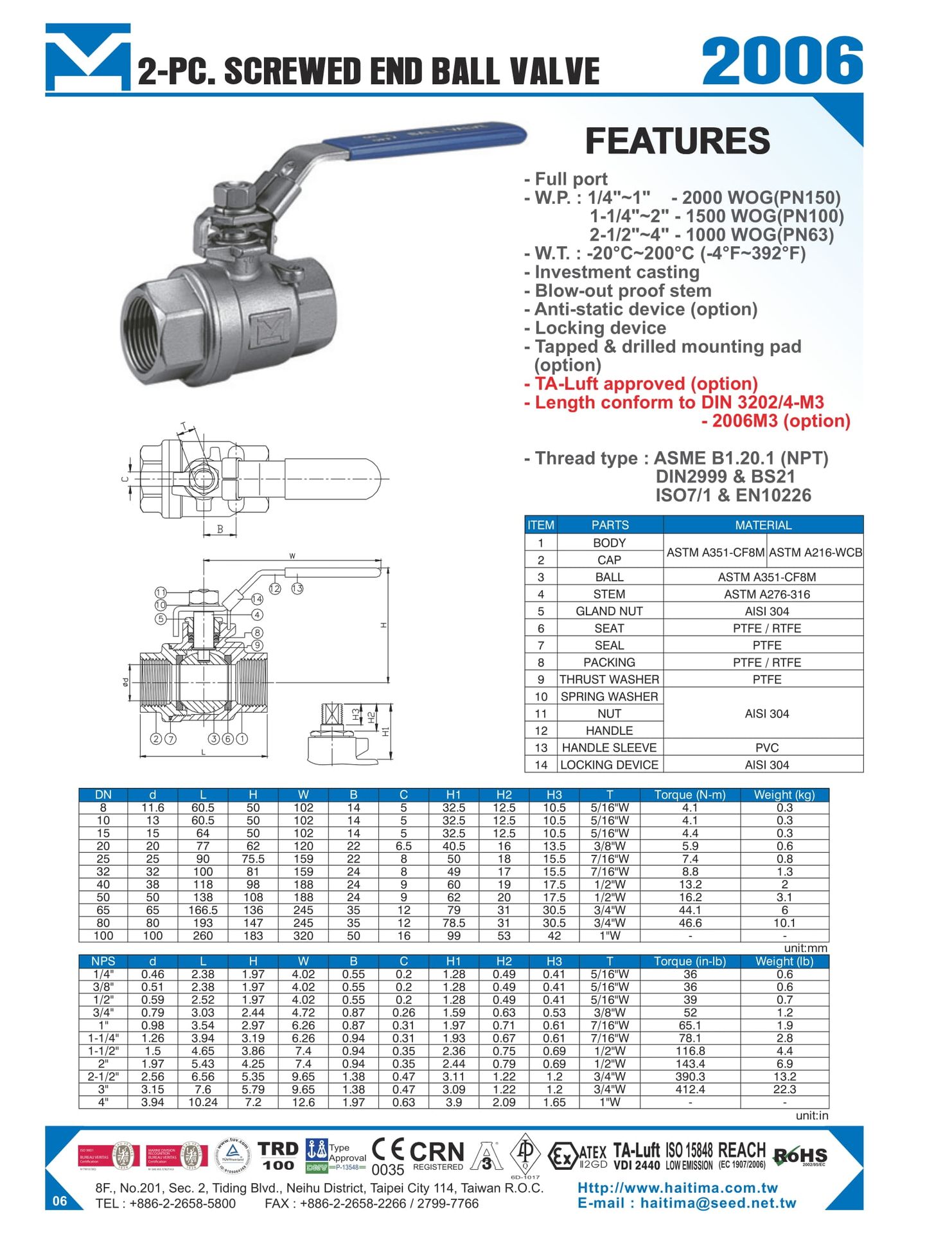 A durable ball valve engineered for seamless flow control in various piping systems, with a pressure rating of 2000 PSI. Renowned for its corrosion resistance and strength, this valve is ideal for applications requiring high reliability and longevity, such as in the oil and gas industry, chemical processing, and water treatment facilities.