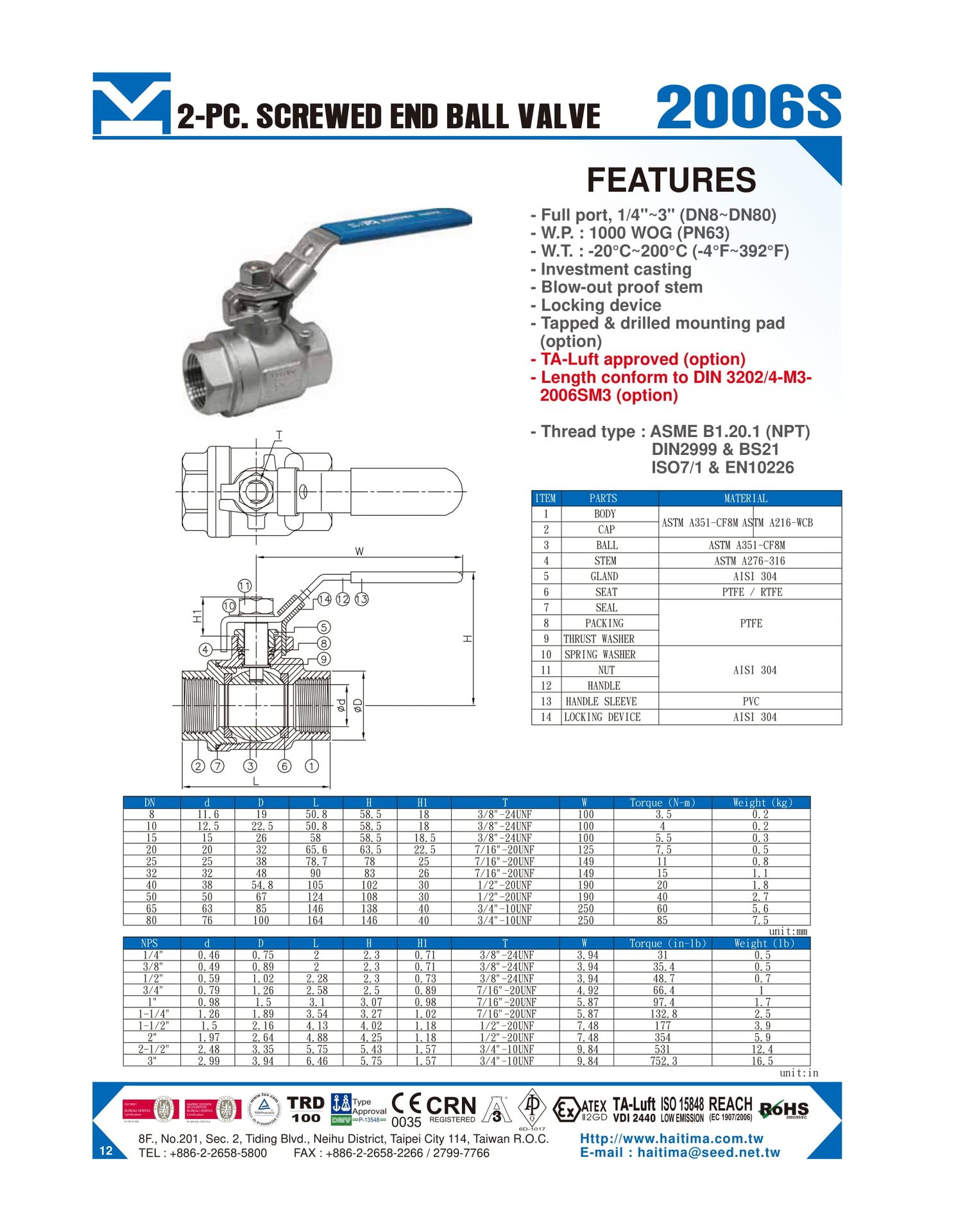 Haitima Ball Valve SS Heavy Duty 1000 PSI