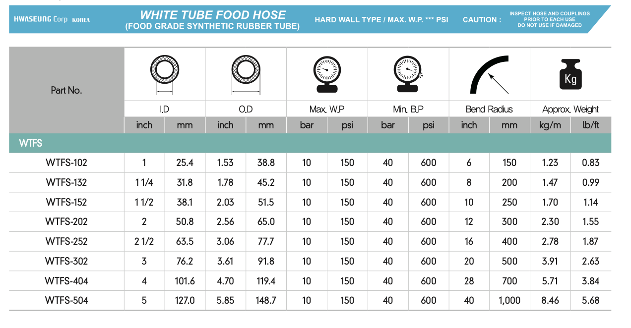 أنبوب وغطاء مصمم لشفط وتفريغ الطعام والمياه الصالحة للشرب. مقاوم بشكل كبير للدهون الحيوانية والزيوت النباتية.
